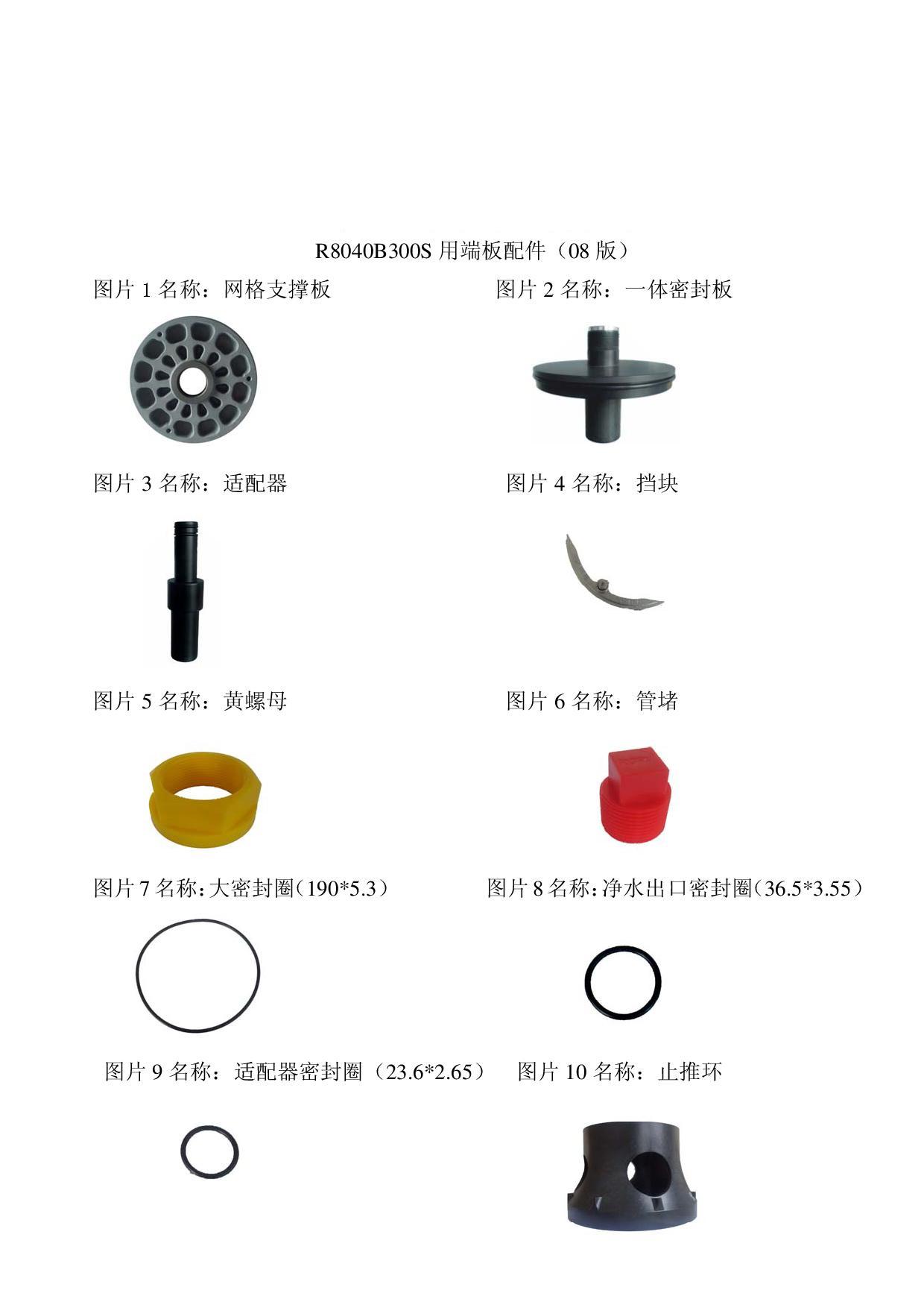 止推环、一体密封板、管堵、挡块、适配器、螺栓、黄螺母、网格支撑板、大密封圈图7、净出水口密封圈图8、适配器密封圈、鞍座、捆带